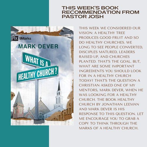 Have you seen the book stall in the foyer? As Pastor Josh moves through this series on Charting Our Course, you will find books to support it! This week, we highlight Mark Dever's "What is a Healthy Church?"