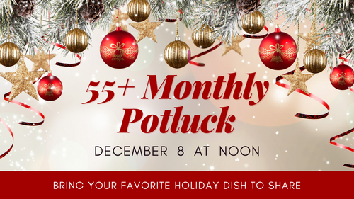 Join us for a devotional, potluck, and fellowship on the second Monday of each month! This group is open to anyone over 55 who wants to connect and build community. Our next gathering will be on December 8, at noon in the Fellowship Hall. Enter through door #6, bring your favorite holiday dish to share, and enjoy a time of encouragement, connection, and fun. We’d love to see you there!