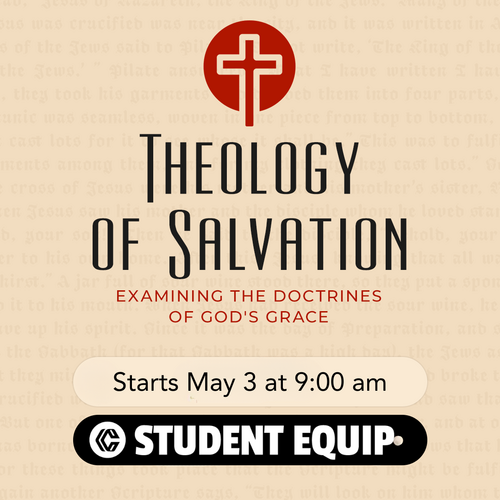 Student Equip meets at 9:00 AM in the upstairs Student Ministry space. In May, we’ll be in a study on the Theology of Salvation. Here’s what to expect in the coming weeks: